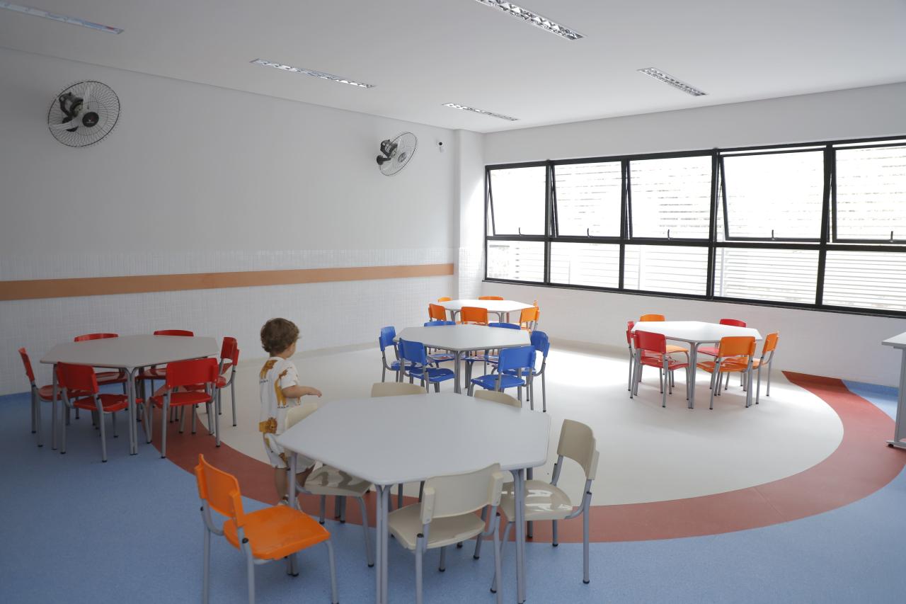 O pavimento térreo contém 6 salas maternal, fraldário, banho e espaço de troca, amamentação, lactário, solário para bebês, vivência maternal, áreas de recreação, sanitários infantis e adultos (feminino, masculino e para Pessoas com Deficiência), DML (Depósito de Material de Limpeza) e depósito. O 1º pavimento tem 6 salas da Emei, sanitários infantis (feminino, masculino e PCD), sala multiuso, auditório, sala de artes, sala de leitura, área de vivência, solários (espaço de recreação), secretaria, almoxarifado, refeitório, cozinha, copa, lavanderia, vestiário para funcionários e DML.